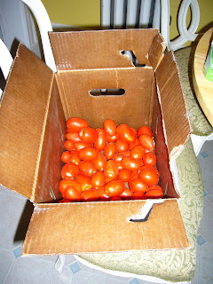 A few days later I lugged to my office two HUGE boxes of tomatoes and onions, which required help from Adam to carry back to our apartment. Thus started my first foray into canning.