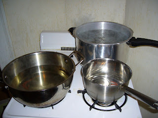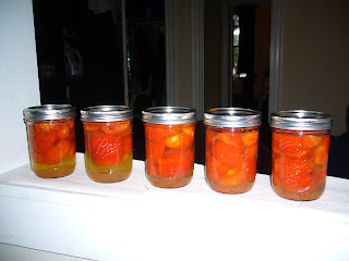 After filling and sealing the jars, you simply boil them in a water bath for about 50 minutes. After the jars cool for a day they're done. As long as the lid didn't pop up, you've got sealed tomatoes to keep you through the winter!